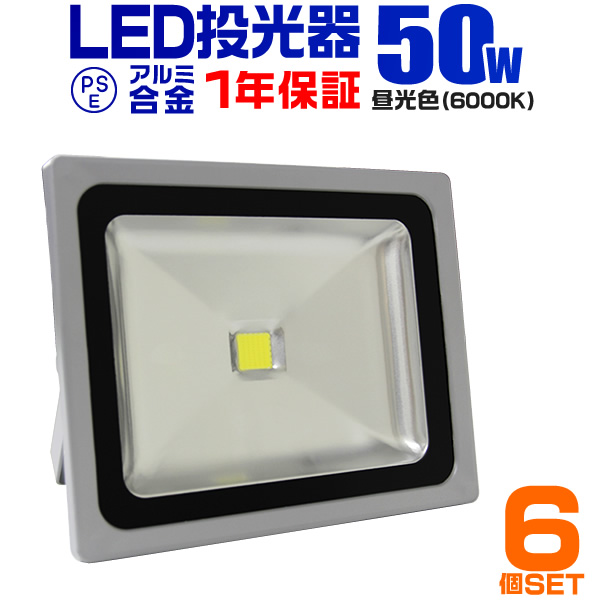 LED 投光器 6個セット 50W 500W相当 1年保証 LED投光器 昼光色 6000K 広角120度 防水加工 3mコード付き ledライト 照明 ライト 看板灯 集魚灯 作業灯 駐車場灯 ナイター 屋台 工場 倉庫 屋内 照明 船舶 屋外 人気 送料無料