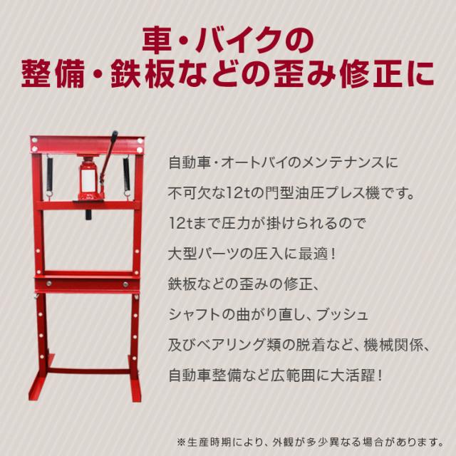 油圧プレス 12t プレス 門型プレス機 ショッププレス 油圧工具 手動 油圧 レッド/赤