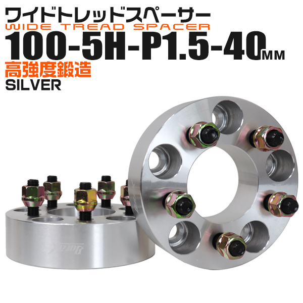 Durax ワイドトレッドスペーサー 2枚セット 40mm PCD100 5H P1.5 シルバー ワイトレ ホイール スペーサー ナット アルミ 高強度 軽量 耐腐食 耐摩耗 アルマイト表面処理 ワイドスペーサー 車 タイヤ 4ホール 4穴 人気 おすすめ 送料無料