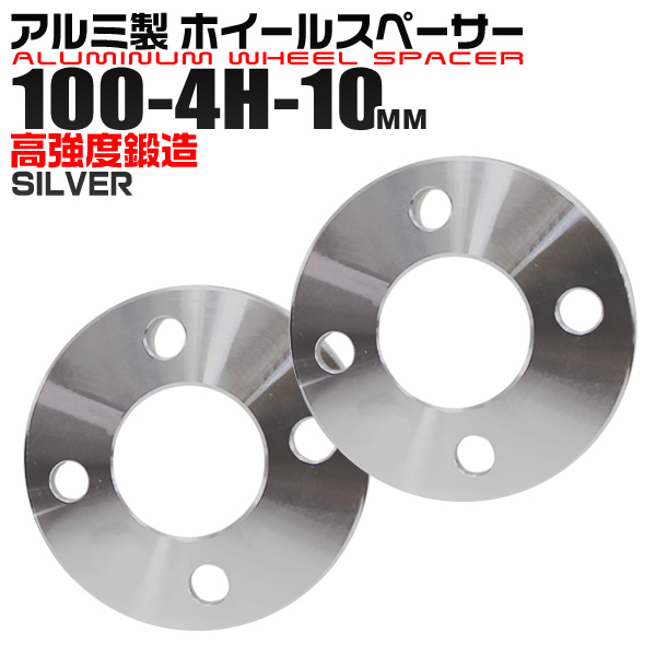 ホイールスペーサー 10mm PCD100-4H シルバー 2枚セット 4穴