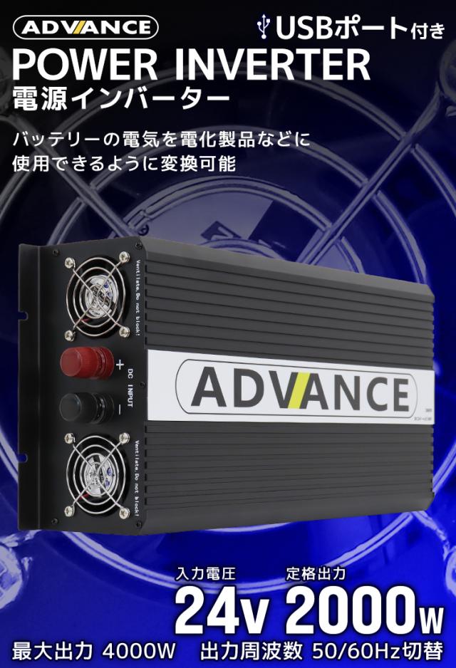 インバーター 24V 100V カーインバーター DC-ACインバーター 定格2000W 最大4000W DC24V/100V USBポート付き 疑似正弦波 矩形波 非常用電源 車中泊 車 スマホ充電 発電機 防災グッズ 防災用品 家庭用電源 変圧 変電 送料無料