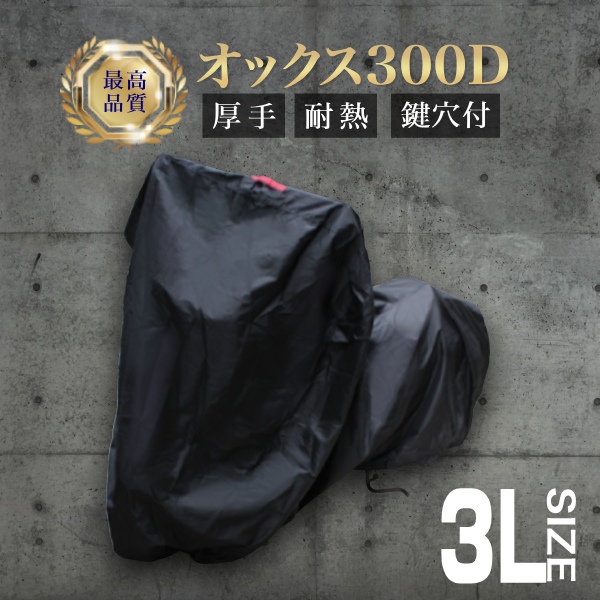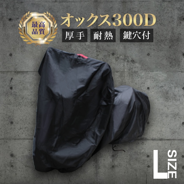 【最高品質】 バイクカバー 厚手 丈夫 防水 遮熱 Lサイズ ロック穴 盗難防止 飛ばない ワンタッチベルト付き 撥水 オックス300D バイク カバー ボディカバー ボディー ホンダ ヤマハ スズキ 大型 大きめ 送料無料