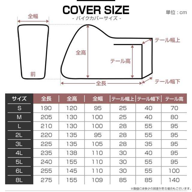・カウル付きの車体(カウルの大きさ)により、丈が短くなる場合があります。 ・適応サイズは参考サイズです。ご購入の前に、実際にサイズを測って下さい。サイズ違いによる交換は致しかねます。(特に改造やオプション品の装着等) ・直射日光や風雨、砂埃よりバイクを保護する事でカバーは必ず経年劣化を生じます。お客様の仕様状況によって異なりますが生地が脆くなってきたら寿命です。新しい物をお買い求め下さい。 ・完全防水ではございません。 ・走行直後のエンジン及びマフラー部分は非常に高温です。しばらく放置し十分熱を冷ましてからカバーをお掛け下さい。マフラー等の高温部分が触れるとカバーが溶ける場合があります。 ・再塗装車へのご使用はお控え下さい。長雨や高温多湿等の気象条件により化学反応が発生し塗装面を痛める場合がございます。 ・輸入品の為、外箱はありません。ご了承下さい。 ・海外製品で、簡易梱包での輸入のため風防に擦れや多少の小キズなどがある場合がございますが、商品自体には問題ありませんのでご了承下さい。 ・商品は、モニターによって色合いが異なって見える場合があります。 ・仕様・デザインは改良のため予告なく変更することがあります。 |