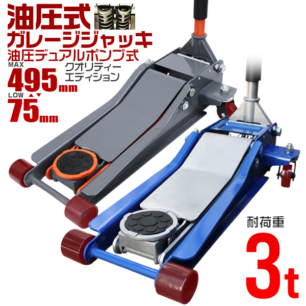 \累計100万台突破/ ガレージジャッキ 低床 フロアジャッキ 3t グリスニップル付き ジャッキ ローダンウンジャッキ 油圧ジャッキ 低床ジャッキ デュアルポンプ式 ローダウン ジャッキアップ タイヤ交換 オイル交換 送料無料
