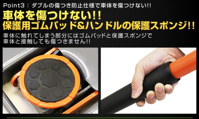 キャスター・ハンドル付きだから手軽に扱える上、少ない力で車体がぐんぐん持ち上がって作業もすばやく行えます。