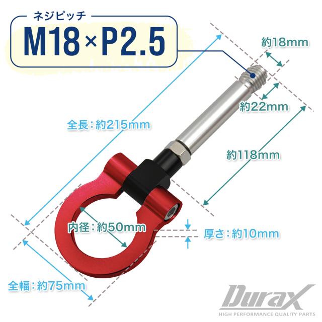 牽引フック 車 牽引 M18×P2.5 Durax アルミ製 フック けん引 汎用 アルマイト仕上げ 頑丈 可倒式 脱着式 フロント リア 対応 折りたたみ式 軽量 競技 レース サーキット スポーツカー 雪道 故障車 ミニバン 送料無料