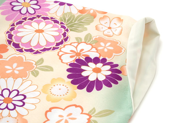 ※着物の柄部分は大きな生地を使用して作られておりますので、色や柄の出方、模様の配置等が画像と異なる場合がございます。