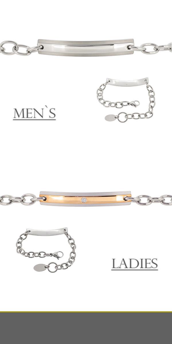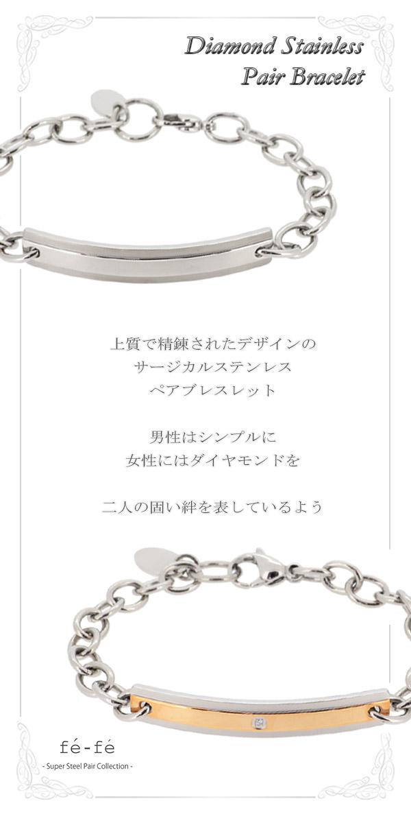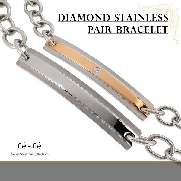 ダイヤモンドステンレスプレートペアブレスレット【fe-fe フェフェ】送料無料/ペア/アクセサリー/カップル/ブレスレット/セット