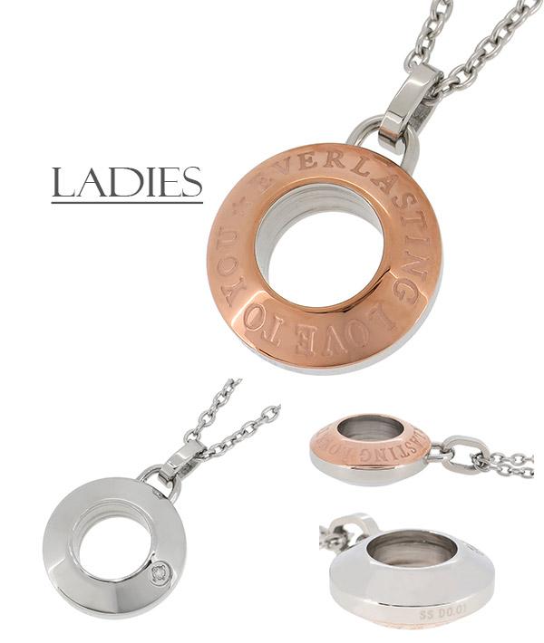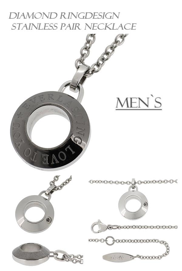 ペアネックレス オシャレ 金属アレルギー ステンレス ペアアクセサリー リング状 ダイヤモンド【新宿 銀の蔵】