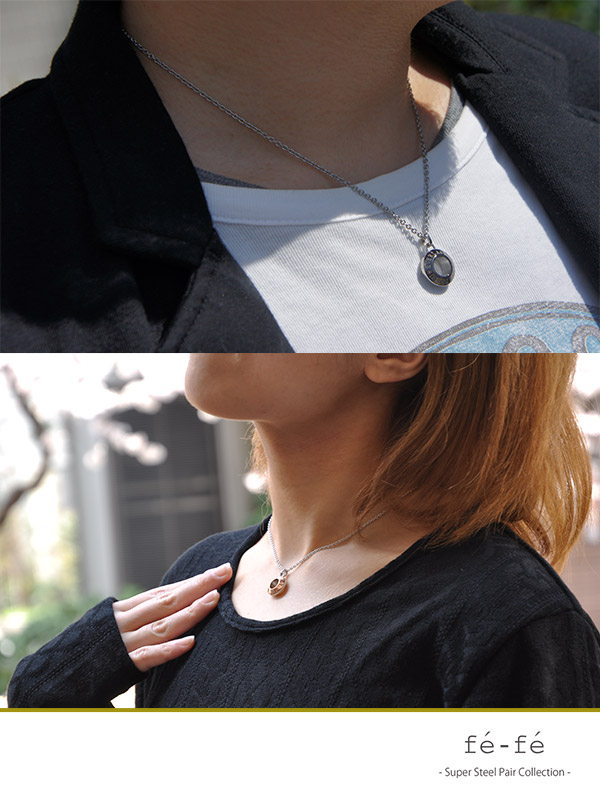 ★ 送料無料 ★【fe-fe 】ダイヤモンド リングデザイン ステンレス ペアネックレス