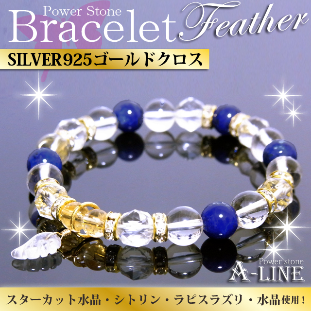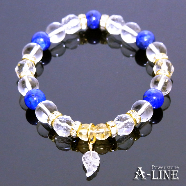 天使の羽水晶をブレストップにしながら、AAAグレードのラピスラズリを使用!スターカット水晶を使用し、シトリン6mmを使った高級ブレスレット!