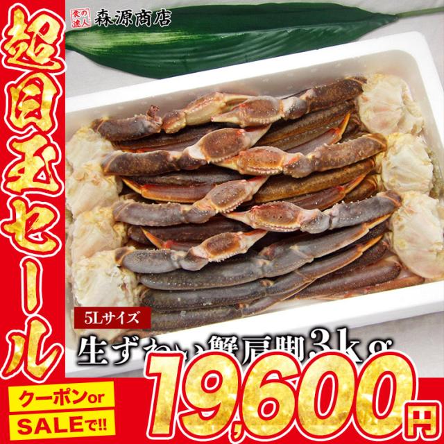 特大5L 生ずわい蟹 3kg 大きいズワイガニの足 肩脚 (セクション) 化粧箱入り かに 蟹 カニ 送料無料 プレゼント 食品 グルメ 海鮮 ギフト プレゼント