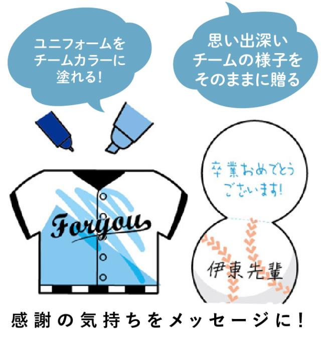 野球ボールとユニフォームの形をしたメッセージカードに、チームや監督への感謝の気持ちを込めてみませんか?