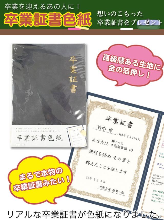 卒業証書が色紙に!卒業を迎える大切な人へ贈るメッセージ色紙(寄せ書き)。まるで本物のような卒業証書型色紙。