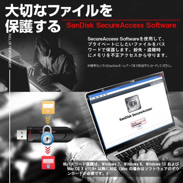 * パスワード保護は、Windows 7、Windows 8、Windows 10 および Mac OS X v10.9+ 以降に対応(Mac の場合はソフトウェアのダウンロードが必要です。)