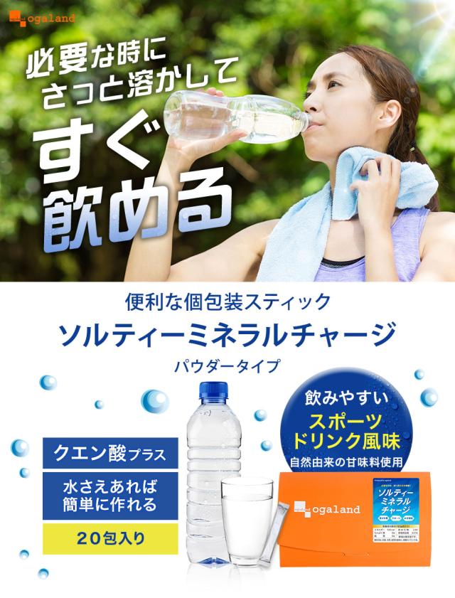 【W割引中!!】ソルティ— ミネラル チャージ 20包(スポーツドリンク風味) 災害時に 災害 防災グッズ オーガランド ソルティ— ミネラル 送料無料 熱中症 対策 クエン酸 スポーツ 500ml 粉末 水分補給 ナトリウム 外出時 持ち運びサイズ _JH _JF 34001