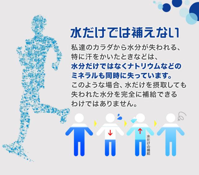 ブドウ糖(ドイツ製造)、食塩、デキストリン/クエン酸、甘味料(ステビア)、香料、リン酸三カルシウム