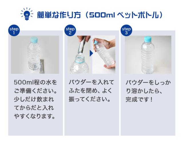 1包を500cc程度の水に良く溶かして、1日に1〜2包を目安に、数回に分けてお召し上がりください。