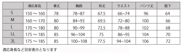 LLサイズ 適応身長175〜185 着丈85 胸囲96〜104