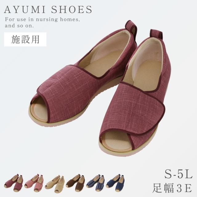 ケアシューズ,ルームシューズ,スリッパ,室内,室内履き,室内用,シニア,メンズ,レディース,男性,女性,撥水,抗菌,防臭,洗える,手洗い,手洗い可能,滑り止め,すべり止め,滑りにくい,入院,病院,リハビリシューズ,靴,シューズ,あゆみ,徳武産業,あゆみシューズ,介護シューズ,介護靴,高齢者,お年寄り,男性用,女性用,紳士用,婦人用,介護施設,デイサービス,デイケア,介護,介護用品,デイサービス,老人ホーム,施設,施設用,ヘルパー,家,家用,部屋用,履きやすい,履かせやすい,脱ぎ履きしやすい,脱ぎ履き,簡単,歩きやすい,動きやすい,疲れにくい,脱げにくい,締め付けない,しめつけない,締めつけない,ゆったり,ソフト,クッション,やわらかい,柔らかい,履き心地,快適,心地よい,気持ちいい,フィット,ギフト,プレゼント,敬老の日,母の日,父の日,誕生日,誕生日プレゼント,クリスマス,おすすめ,オススメ,人気,おしゃれ,お洒落,オシャレ,つま先なし,つま先,オープン,メッシュ,夏,夏用,涼しい,マジックテープ,マジックバンド,かすり調,ベージュ,レッド,赤,ブルー,青,ネイビー,紺,ブラウン,茶,S,M,L,LL,3L,4L,5L,3E,
