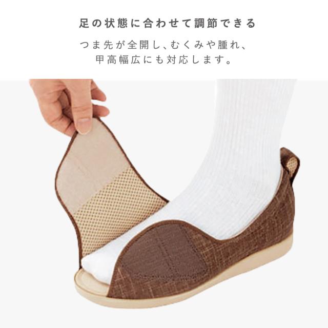 つま先が全開して、むくみや腫れ、甲高幅広にも対応します。