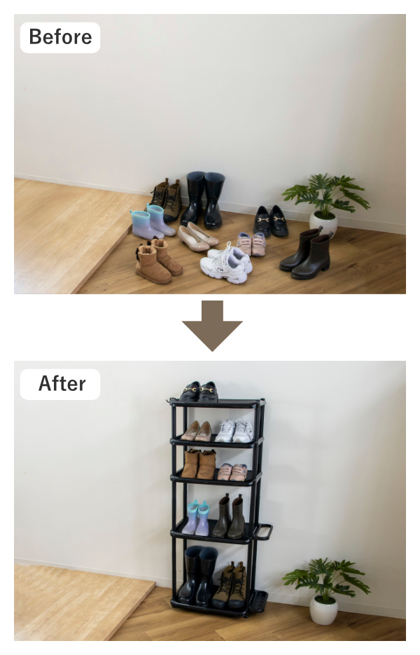 オープンタイプのため通気性がよく、湿気がこもりにくい設計です。カビやニオイの原因を抑え、脱ぎたての靴も気にせず収納できます。大切な靴を清潔に、快適に保管できます。