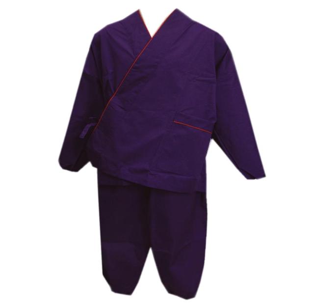 作務衣 さむえ 女性用 綿ポリ 無地 紫色 M L 部屋着 ユニフォーム 簡単 レディース