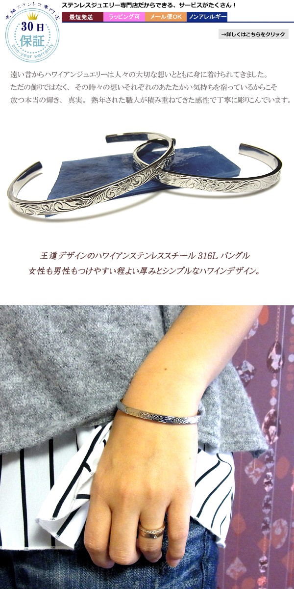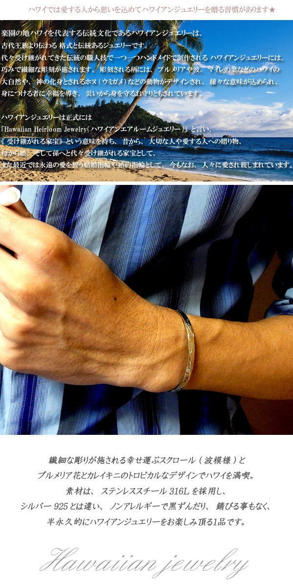送料無料 ハワイアンジュエリー バングル ブレスレット メンズ レディース ステンレス ラッピング対応 アレルギー対応
