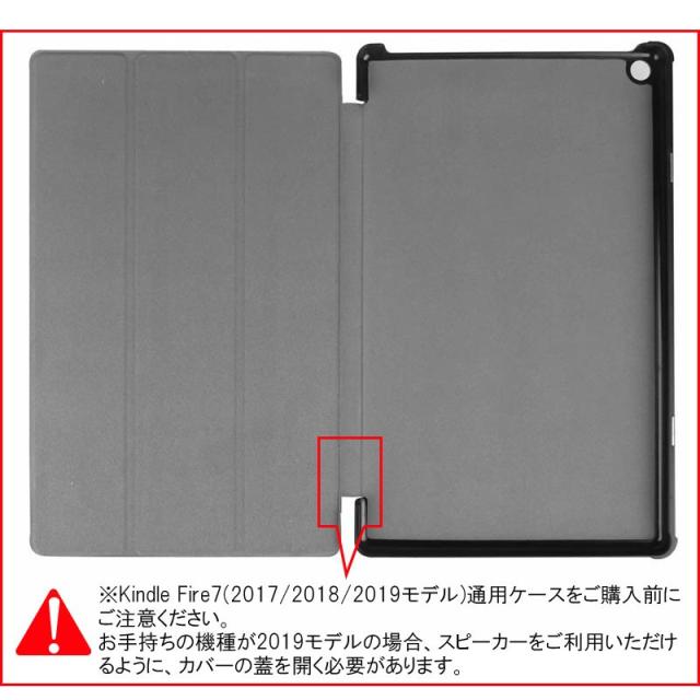 ※Kindle Fire7(2017/2018/2019モデル)用ケースについて、お手持ちの機種が2019モデルの場合、スピーカーをご利用いただけるように、カバーの蓋を開く必要があります。