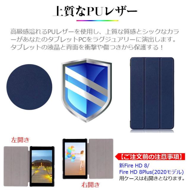 【ご注文前の注意事項】新Fire HD 8/Fire HD 8Plus(2020モデル) 用ケースは右開きとなります。