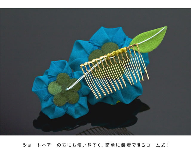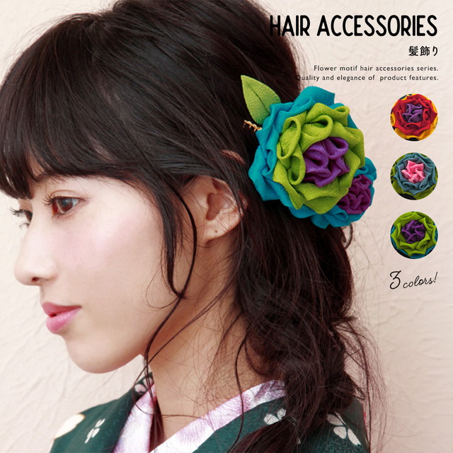 着物のヘアスタイルにおすすめな、つまみ細工の髪飾りです。