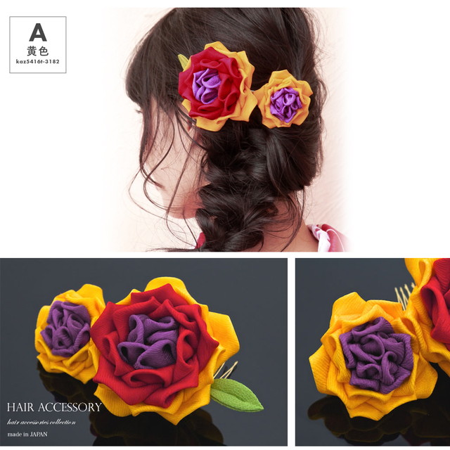 髪飾り 成人式 つまみ細工 薔薇 花 コーム ヘアアクセサリー 卒業式 七五三 日本製 和装