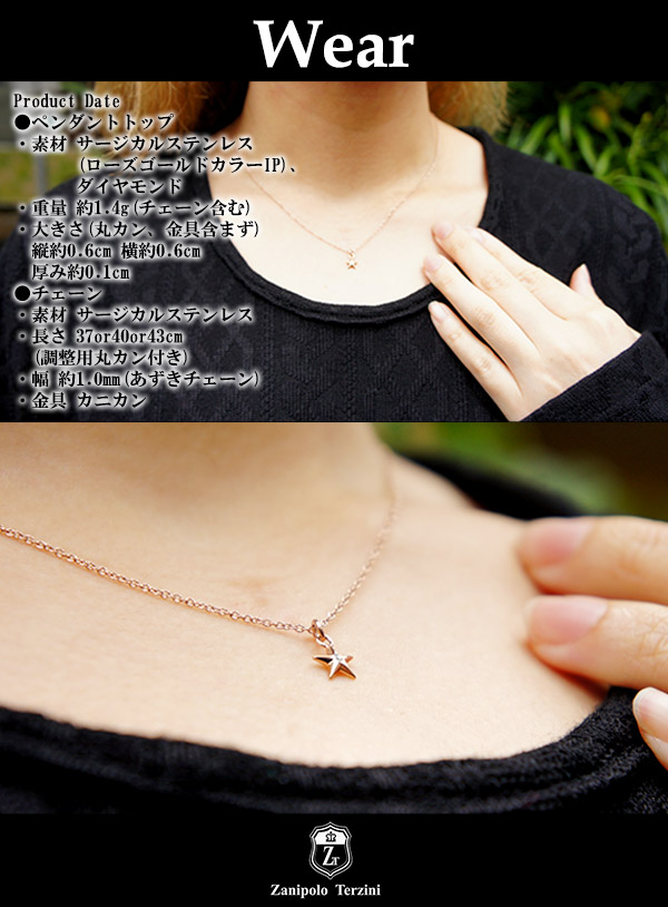 ミニスター ダイヤモンド ローズゴールドカラー サージカルステンレス ネックレス【Zanipolo Terzini】 /レディース 女性