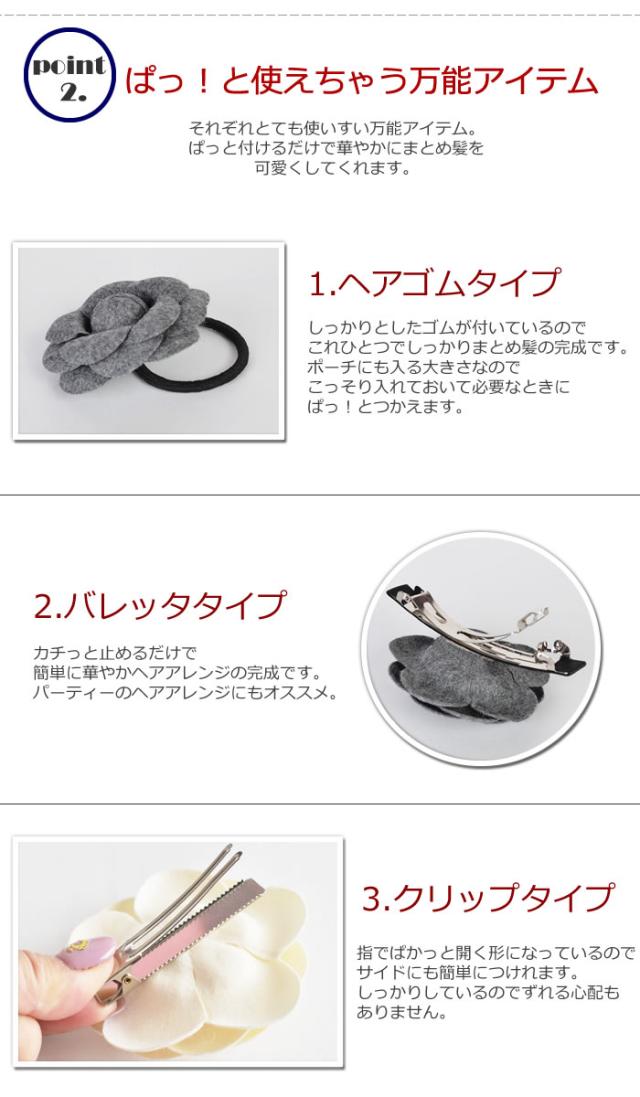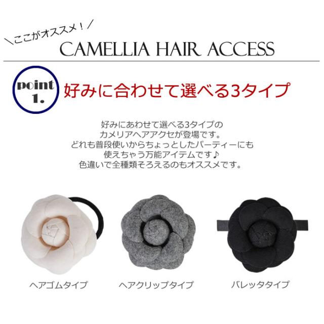 大人可愛いの鉄板!カメリアにヘアゴムタイプ、バレッタ、ヘアクリップのヘアアクセ3種類登場です★