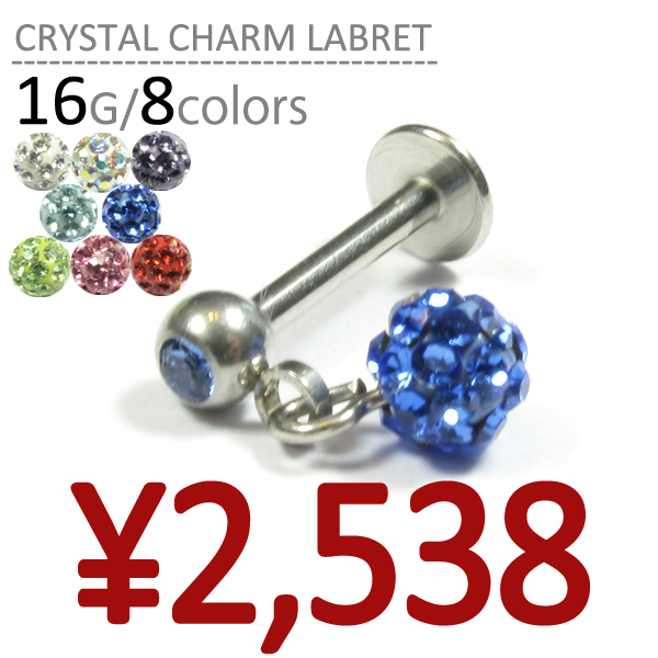 クリスタルチャームラブレット 16G サージカルステンレス シルバー ボディピアス ボディーピアス ラブレット リップ トラガス ヘリックス 耳ピアス 軟骨ピアス ステンレス