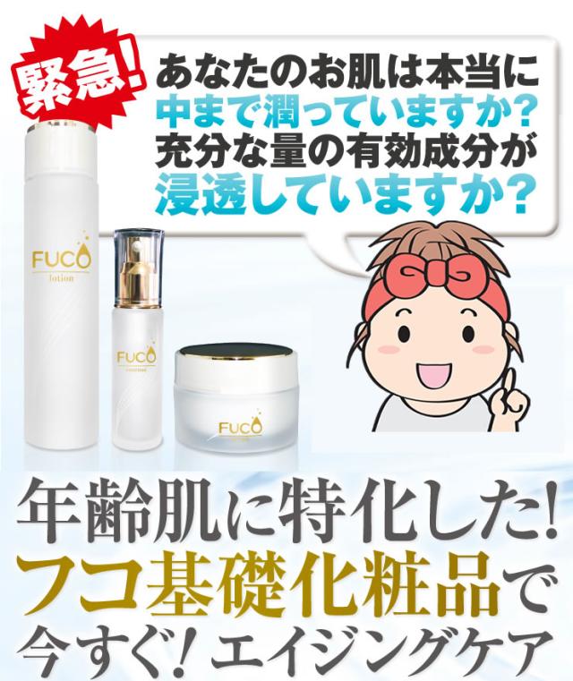 - 去年から、肌の乾燥が酷くなりました。 以前使用していたフコ化粧品を思い出し、再度使用しました。 フコ化粧品は、浸透力が良く乾燥が改善しました。 今回、再度使用してフコ化粧品の効果を実感しました。