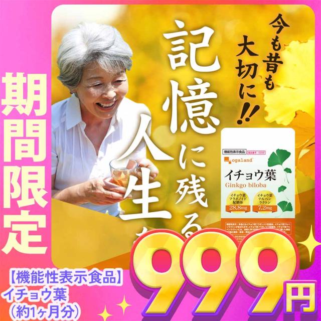 【999円セール!!】イチョウ葉 サプリ (約1ヶ月分) 送料無料 健康 サポート ポリフェノール ギンコライド フラボノイド イチョウ葉エキス イチョウサプリ 銀杏 ぎんなん イチョウ サプリメント 元気 若々しく オーガランド 記憶力 _JH _1K ポイント消化 11057