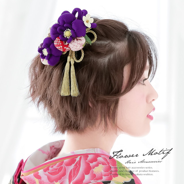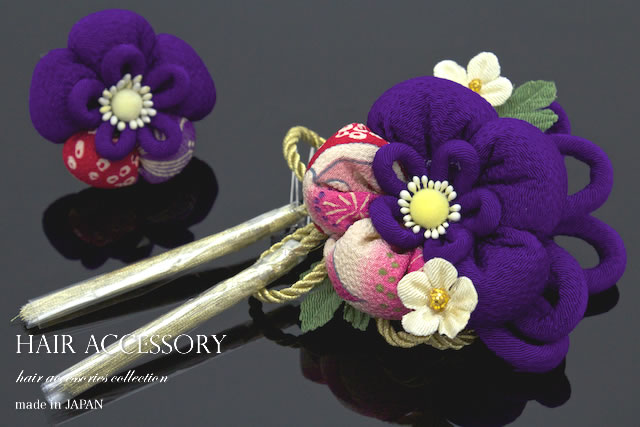 成人式 髪飾り 成人式の髪飾り 2点セット 青紫 パープル ぽってり 花 房飾り 縮緬 コーム スリーピン ぱっちん ヘアアクセサリー 卒業式 日本製 和装
