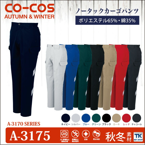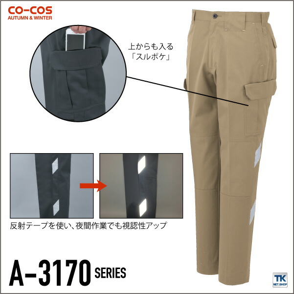 作業ズボン カーゴパンツ 作業服 作業着 視認性アップ 反射テープ付 秋冬 CO-COS コーコス ワークパンツ cc-a3175
