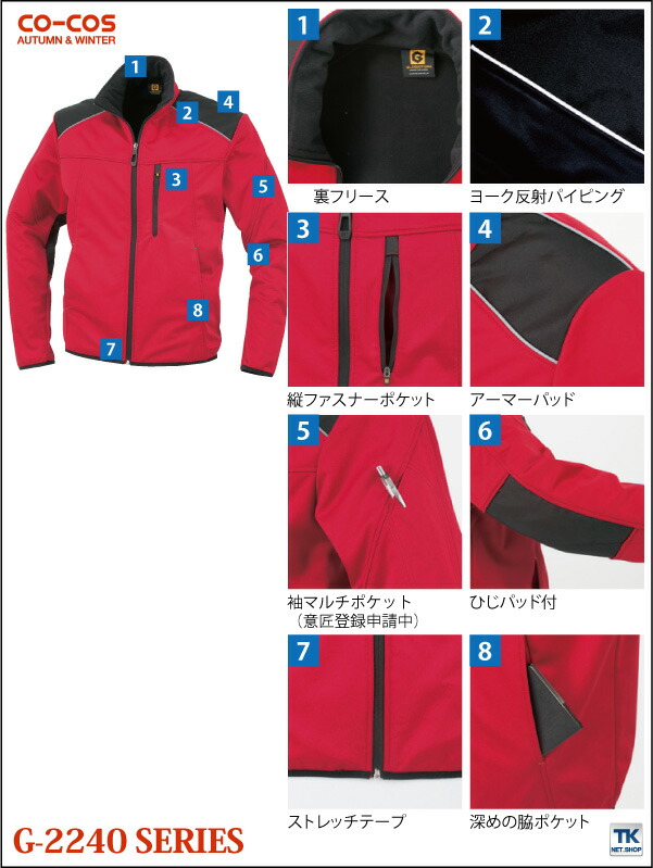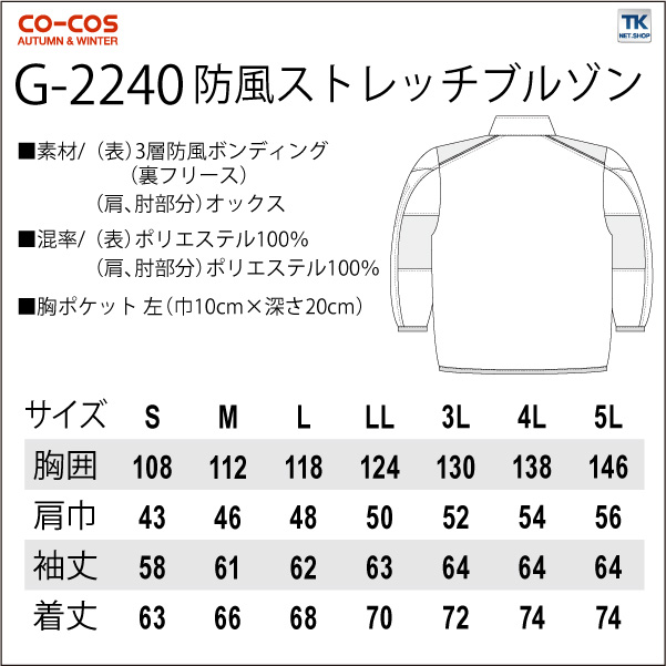 防風ストレッチブルゾン 作業ジャンパー 長袖ブルゾン 作業服 作業着 ジャケット スタイリッシュワーク 秋冬 CO-COS コーコス 長袖 cc-g2240