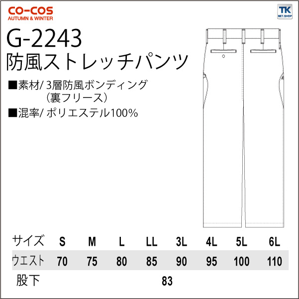 防風ストレッチパンツ 作業ズボン 作業服 作業着 パンツ スタイリッシュワーク 秋冬 CO-COS コーコス スラックス cc-g2243