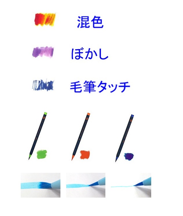 水性染料インクは、穂先に水を含ませると「にじみ・ぼかし」が表現できます。