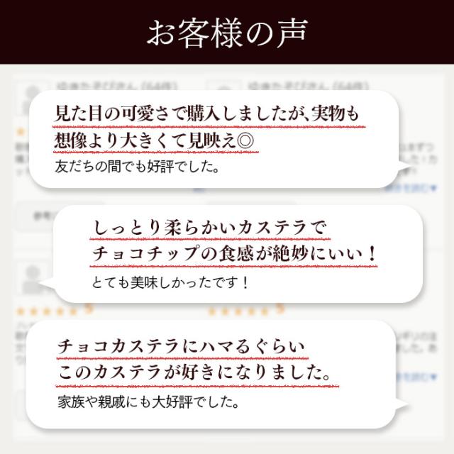 - バレンタインデーに孫とお友達に渡しました。 可愛いと皆さん言って下さいました。 カステラも美味しいと言って喜んで頂きました また、利用させていただきます。