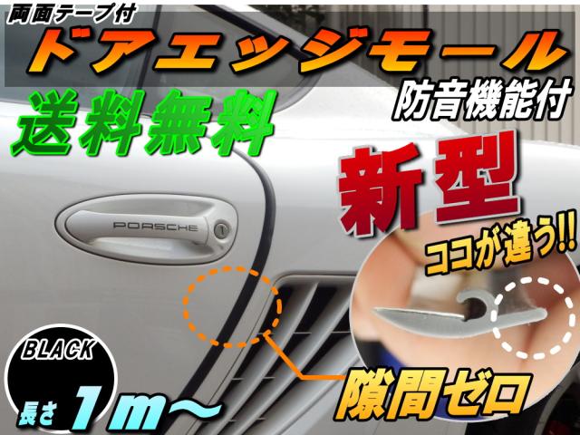 シリコン ドアモール (h型) 黒 【メール便 送料無料】ブラック 長さ1m (100cm) 新型 汎用エッジガード 3M両面テープ貼付済 サイドドアエッジ プロテクター 騒音 隙間風 風切音 キズ防止(保護) 車内静音化 防音効果 車用 取り付けモール