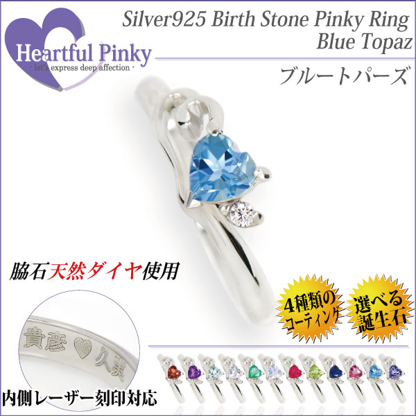 ブルートパーズ リング 指輪 送料無料 刻印無料 シルバー925 ハートフルピンキー 11月 4mm ハートシェイプ 脇石天然ダイヤモンド