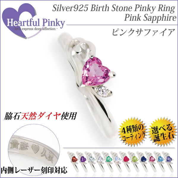 ピンクサファイア リング 指輪 送料無料 刻印無料 シルバー925 ハートフルピンキー 9月 4mmハートシェイプ 脇石天然ダイヤモンド[宅配便]