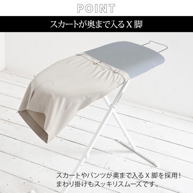 スカートが置くまで入るX脚を採用!まわり掛けもスッキリスムーズです。
