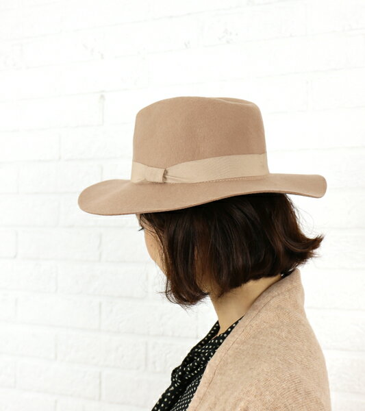 やや広めのツバに中折れを取り入れたキレイなフォルムで、フェミニンにもマニッシュにも合わせていただけます。