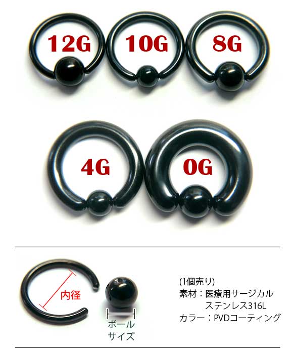 本日P2倍 4G ピアス ボディピアス 黒 キャプティブビーズリング ブラック CBR 金属アレルギー対応 316L 高品質 ステンレス メンズ