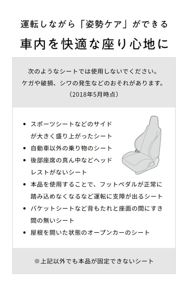 - こんにちは。とても体にフィットしていて嬉しかったです。色々試しましたがイオンのビレバンで偶然見つけて今回購入させて頂きました。直ぐに車にセットしたらホントにフィット感が良くてズレもないので購入して良か...